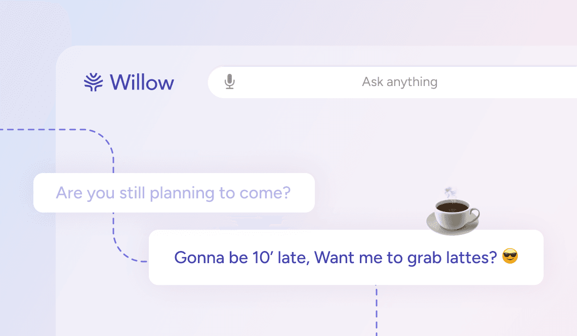 Willow adapts to your tone and writing style across different apps to sound like you.