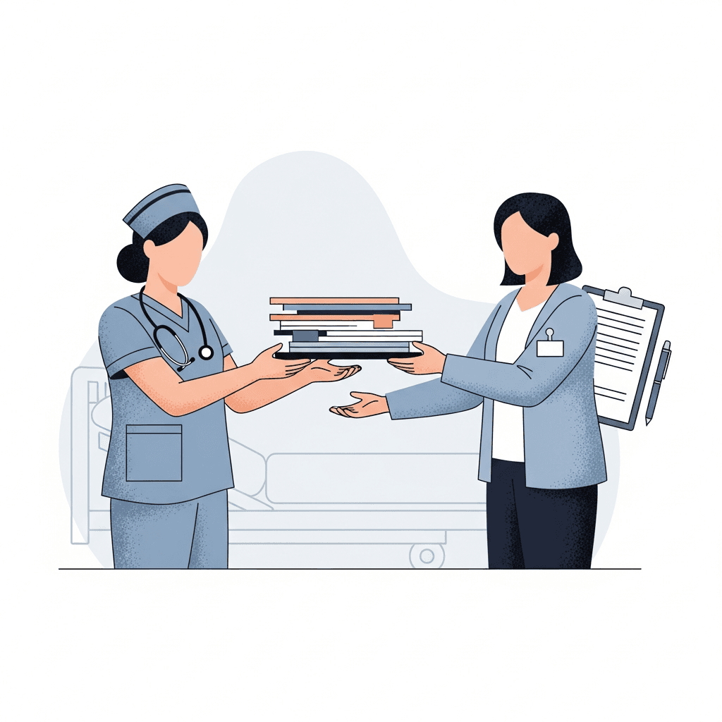 Work at the top of your license by delegating documentation that doesn't require RN clinical judgment. Medical assistants, unit clerks, and certified nursing assistants can handle data entry tasks like inputting vital signs already collected, updating patient demographics, documenting basic intake and output measurements, or completing supply charges.