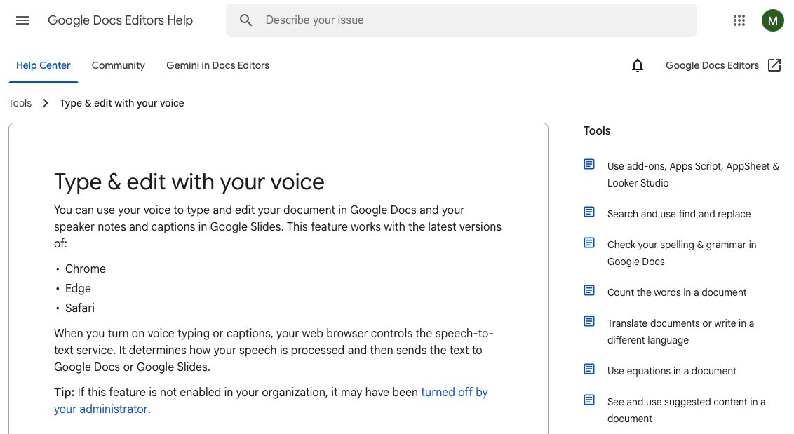 Good for: Teams already using Google Workspace who want free voice input for documents created within Google Docs and Google Sheets.