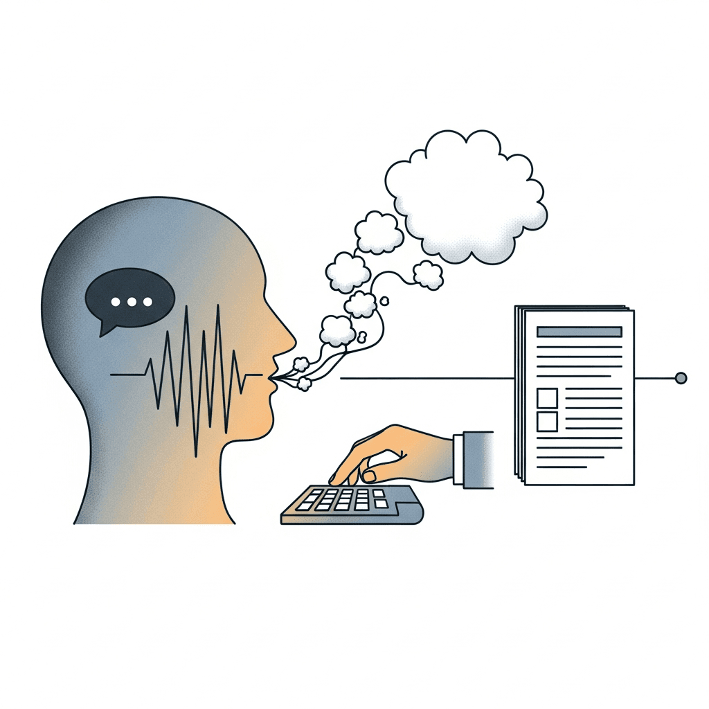 Voice collapses those four processes into one. You speak a complete thought, and the words appear. No manual encoding. No visual monitoring. No motor coordination overhead.