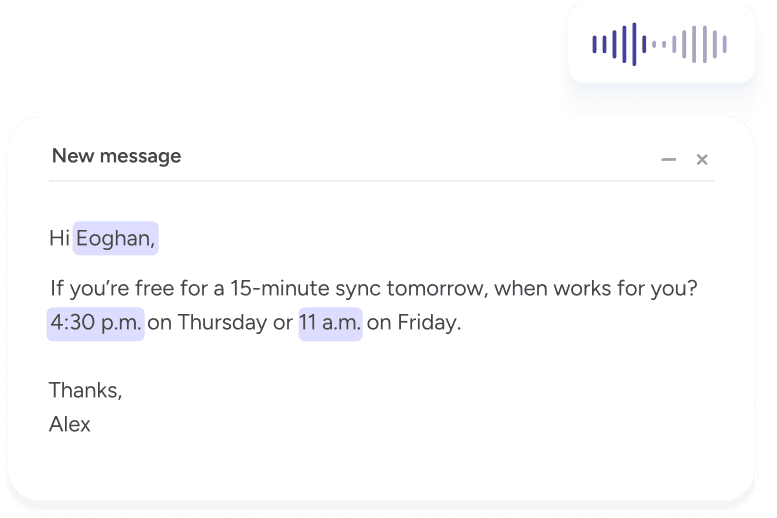 Respond to emails, send updates, and communicate quickly with AI-powered voice dictation.
